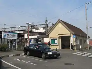 Yahagibashi Station is served by the Meitetsu Nagoya Main Line and is 32.5 kilometers from the terminus of the line at Toyohashi Station.