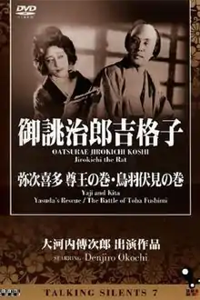 Yaji and Kita: Yasuda's Rescue (弥次喜多 尊王の巻, Yajikita sonnō no maki, lit. "Yaji and Kita: The Loyalists") is a 1927 Japanese black and white silent comedy film directed by Tomiyasu Ikeda and stars Denjiro Okochi and Goro Kawabe, his senior at Nikkatsu.[1][2] The film showcases the comic talent of Denjiro Okochi, which contrasts with his performance in Oatsurae Jirokichi Koshi.