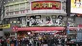 A series of announcements were then made on the main site, beginning in late July and continuing throughout August, with all four main characters being revealed one by one.[8] Kazuma Kiryu was the first to be confirmed after Majima, on July 21.[10] Shun Akiyama was then announced on August 4,[11] and Ryuji Goda was then revealed in the final announcement on August 18.[12] Following each character's confirmation, a large poster of him was erected across the east exits of the Shinjuku branch of Don Quijote, a shop that features in the game itself as a tie-in, and was replaced by the next character when he was announced.