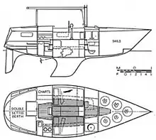 On request from Yamaha, Group Finot in France designed the boat in 1973. The hull is based on the same classical design as the Morbic III who won the Fastnet the same year. The layout is innovative with a center cockpit and the main cabin in the rear.
