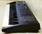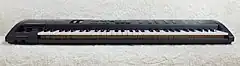 The V50 keyboard consists of 61 keys, covering 5 octaves. It supports both velocity sensitivity and channel aftertouch. The MIDI transmit channel of the keyboard is configurable. Wheels for pitch bend and modulation control are provided on the left side of the keys.