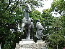 Reproductions of Chiyo's image can be found in a number of places; a bronze statue of her and the horse she gave her husband, which stands near the ascent to Kochi Castle, close a statue of her husband on horseback and full armor; a bronze status of her, holding the reins of the horse, and her husband, located in the park below Gujo Hachiman castle in Gifu Prefecture; and a portrait of her in retirement, wearing the garb of a Bhikkhuni. There a shrine dedicated to Chiyo and Kazutoyo for strong marriage.