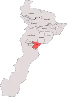 Map of Achkhoy-Martanovsky District with Yandi highlighted