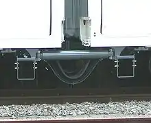 Yaw damper between cars of an E259 series EMU operated by JR East in Japan, June 2009