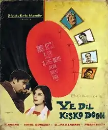 Yeh Dil Kisko Doon is a 1963 Bollywood Romantic comedy film.[1] The film had Shashi Kapoor, Ragini, Agha, Jeevan, and Anwar in lead roles.[2][3] The film is known for its music and songs.[4]