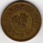 The buqsha coin itself is bronze and approximately 27 mm (1 inch) across. Modern Yemeni currency also includes silver coins worth 5, 10 and 20 buqshas, and bronze half-buqsha coins. These were introduced after Yemeni independence from the Ottoman Empire.