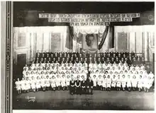 The New York branch of the Freiheit Gezang Farein (Yiddish: פרײהײט געזאַנג פאַרײן Freedom chorus) was founded in 1923 by composers Lazar Weiner and Jacob Schaefer in the Lower East Side.[2][3][4] Schaefer, who was still living in Chicago when the New York choir was founded, had used the name for a previous choir in Chicago he founded in 1913–14 and had picked it to not alienate potential members or audiences who were not Communists.[5][6][7] The New York choir was affiliated with the newspaper Morgen Freiheit, and had a strong working class identity and espoused far left or Communist politics.[4][8][7] Many of its early members were garment workers.[9] The choir became quite large, growing from 100 to 200 members in the first decade, most of whom were first generation Jewish immigrants who spoke Yiddish as their first language.[3] Its repertoire was mainly in Yiddish, although it did also perform in Russian, Polish, and other European languages.[10] In the early years both Weiner and Schaefer composed for the choir, Weiner was its conductor.[7] It gave its first major concert at Carnegie Hall in February 1924.[1] Starting in 1924, the chorus often performed together in concert with the Freiheit Mandolin Orkester, a Mandolin orchestra also founded and directed by Schaefer.[7] The choir regularly appeared at rallies and political events as well.[9]