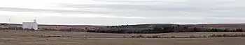 Hays City and Ellis were founded in 1867 and 1870, respectively. However, as fertile as the valley was, the Hog Back ridge of limestone and chalk between the two settlements was considered unsuitable for wheat farming and was initially rejected by immigrant settlers.[49] By 1910, the local press referred to the hill as the "long neglected" Hog Back.[50] Much of these hilltops remain largely in pasture.[51]