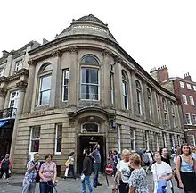 In the early 20th century, the position of the doors was moved, and the internal ground floor layout was altered. In 1924, it was extended to the north-west, along Blake Street.[1] In 1976, the bank became part of the Trustee Savings Bank (TSB).[2] The ground floor was further altered in 1991.[3] The TSB became part of Lloyds TSB, then independent again before leaving the building in 2015.[4] In 2022, the building was converted into the Impossible Motel.[5]