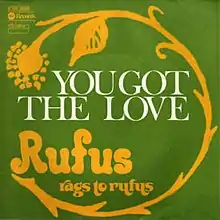 "You Got the Love" is a hit song for the funk band Rufus. It was written by Ray Parker Jr. and Chaka Khan. From the Rags to Rufus album, it spent one week at number one on the Hot Soul Singles chart in 1974. It also peaked at number 11 on the Billboard Hot 100 singles chart.[1]