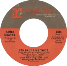 "You Only Live Twice", performed by Nancy Sinatra, is the theme song to the 1967 James Bond film of the same name. The music was by veteran Bond film composer John Barry, with lyrics by Leslie Bricusse. The song is widely recognized for its striking opening bars, featuring a simple 2-bar theme in the high octaves of the violins and lush harmonies from French horns. It is considered by some to be among the best James Bond theme songs,[1] and has become one of Nancy Sinatra's best known hits. Shortly after Barry's production, Sinatra's producer Lee Hazlewood released a more guitar-based single version.