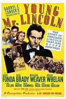 Young Mr. Lincoln is a 1939 American biographical drama western film about the early life of President Abraham Lincoln, directed by John Ford and starring Henry Fonda.[1][2] Ford and producer Darryl F. Zanuck fought for control of the film, to the point where Ford destroyed unwanted takes for fear the studio would use them in the film. Screenwriter Lamar Trotti was nominated for an Academy Award for Best Writing/Original Story.