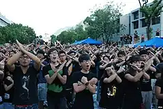Youth in Hong Kong, according to the University of Hong Kong Statistical Profile, comprises citizens of the Chinese territory of Hong Kong aged 15–24 years. As of 2011, youth in Hong Kong ages 15–24 made up 12.4 per cent of Hong Kong's overall population at 875,200 people.[1] Hong Kong is a hybrid culture, influenced by China and Britain, but overall by its international economic ties and neoliberal policies, which plays a role in shaping the lives of the youth in Hong Kong. The youth in Hong Kong is unique in the fact that many are living Transnationalist identities. The demographics are not just ethnically Chinese youth in Hong Kong, but also youth that are ethnically white, Indonesian, Filipino, which can be seen in Demographics of Hong Kong, and that creates a unique society. "Although with a dominant Chinese population, Hong Kong is an international city and is a mix of East and West rich in cultures, history, and religions."[2] The disparity between the rich and poor within Hong Kong has been growing wider.[1]