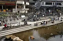 Yumura Onsen (湯村温泉) is a small village located in Shin'onsen town in Mikata District, Hyōgo Prefecture, Japan. As of 2011, Yumura township had a population of 1,206, and its surrounding area (known as Onsen) had a total population of 6,454.[1] Local legend states that the town's hot springs (onsen) were uncovered in AD848 by the priest Jikaku Daishi. The town is said to have been inhabited since this time, and the local temple is claimed to have been built soon after the discovery of the hot springs.