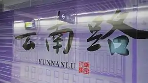 Yunnanlu station (Chinese: 云南路站), is a station on Line 4 of the Nanjing Metro, and a planned interchange station with the currently under-construction Line 5. It opened on January 18, 2017 alongside seventeen other stations as part of Line 4's first phase. The station is oriented on an east–west axis, underneath the intersection of Beijing West Road and Yunnan Road to the north and Shanghai Road to the south.[1]