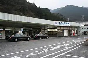 Yunoyama-Onsen Station is a terminal station of the Yunoyama Line, and is located 15.4 rail kilometers from the opposing terminus of the line at Kintetsu-Yokkaichi Station.[1]