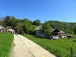 Zahrib stands on a hill northeast of Mlinše. It is connected to Mlinše by a gravel road that regularly washes out after storms and becomes impassable.[3]