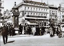 The photo studio specialised in supplying the press, daily newspapers, magazines and illustrated magazines.[12] It was thus involved in the emergence of a tabloid press in Germany.[13] The agency was initially located at Leipziger Straße 105,[14] in close proximity to important newspaper publishers such as the August Scherl publishing house or the Ullstein Verlag.[15] When Zander died unexpectedly early on 12 August 1897, Labisch continued to run the photo studio alone, but kept its company name Zander & Labisch.[16]