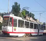 In August 2012, tram depot No. 2 was renovated. After the conservation of the depot, routes No. 5 and 6 were closed.[24] During July to October 2012, the tram track on Lenina Avenue was reconstructed in the section from Metalist Square to Transport Square.[25] Between October and December 2012, at the expense of the owner of the Aurora Shopping Center, a 300 m long tram line was reconstructed on Gorky Street between Gryaznova Street and Komunarivska Street.[26]