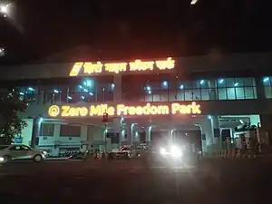 Zero Mile Freedom Park[1] is an elevated metro station on the North-South corridor of the Orange Line of Nagpur Metro in the city of Nagpur, Maharashtra. It is named after the nearby Zero Mile Stone which was built in 1907 to mark the Great Trigonometrical Survey of India.[2] The station was opened on 21 August 2021.[3]