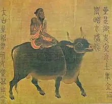 Buddhism, with all its iconography, came to China from India. Zhang Sengyou, working in the early sixth century, painted large murals of Buddhist shrines in Nanjing. He was one of the first to use these influences with happy results.[6] He was also well known for landscapes, especially snow scenery, with a reputation for the so-called "boneless" technique (mogu).
