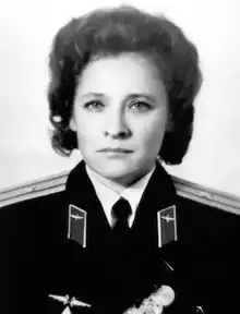 Yorkina was considered one of the least capable of the five female cosmonauts, and Nikolai Kamanin specifically complained that she was "too fond of chocolate and cakes".[7] She was included in plans for Vostok 5, an all-female duration and spacewalk (EVA) mission, but only as the secondary member of the backup crew.[1][10] Another issue that arose for Voskhod 5 was that Zvezda, the company that developed the spacesuits, declined to fabricate a special EVA suit for the women.[3] This caused further delays and the eventual cancellation of any more Voskhod missions after Vostok 6.