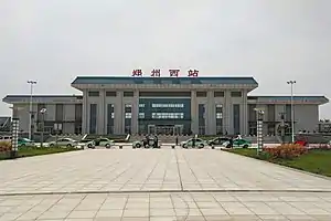 Zhengzhouxi (Zhengzhou West) railway station (Chinese: 郑州西站) is a railway station of Zhengzhou–Xi'an high-speed railway located in Xingyang, Zhengzhou, Henan, China. The station was once named Xingyang South railway station (Chinese: 荥阳南站) and was renamed to the current name on 10 July 2014.[2] It started operation on 18 December 2015.[1] There is also a connecting line to the east of this station allowing trains to reach Zhengzhou railway station.