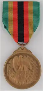 The Zimbabwean Independence Medal, 1980 was instituted on 17 April 1980[1] for award to those who were involved in the Zimbabwean independence process or commemorations in some way.