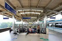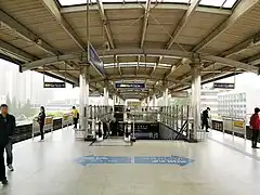 Zongguan Station (Chinese: 宗关站) is a station of Line 1 and Line 3 of Wuhan Metro. It entered revenue service with the completion of Line 1, Phase 1 on July 28, 2004. It is located in Qiaokou District.[1] The station has an island platform and a single-track crossover on the west end of the station. The station served as the terminus of Line 1 from 2004 to 2010.[2] The Line 3 station opened on December 28, 2015.