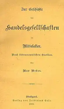 Zur Geschichte der Handelgesellschaften im Mittelalter is a doctoral dissertation written in 1889 by Max Weber, a German economist and sociologist. The original edition was in German and the title is actually translated as The history of commercial partnerships in the Middle Ages.